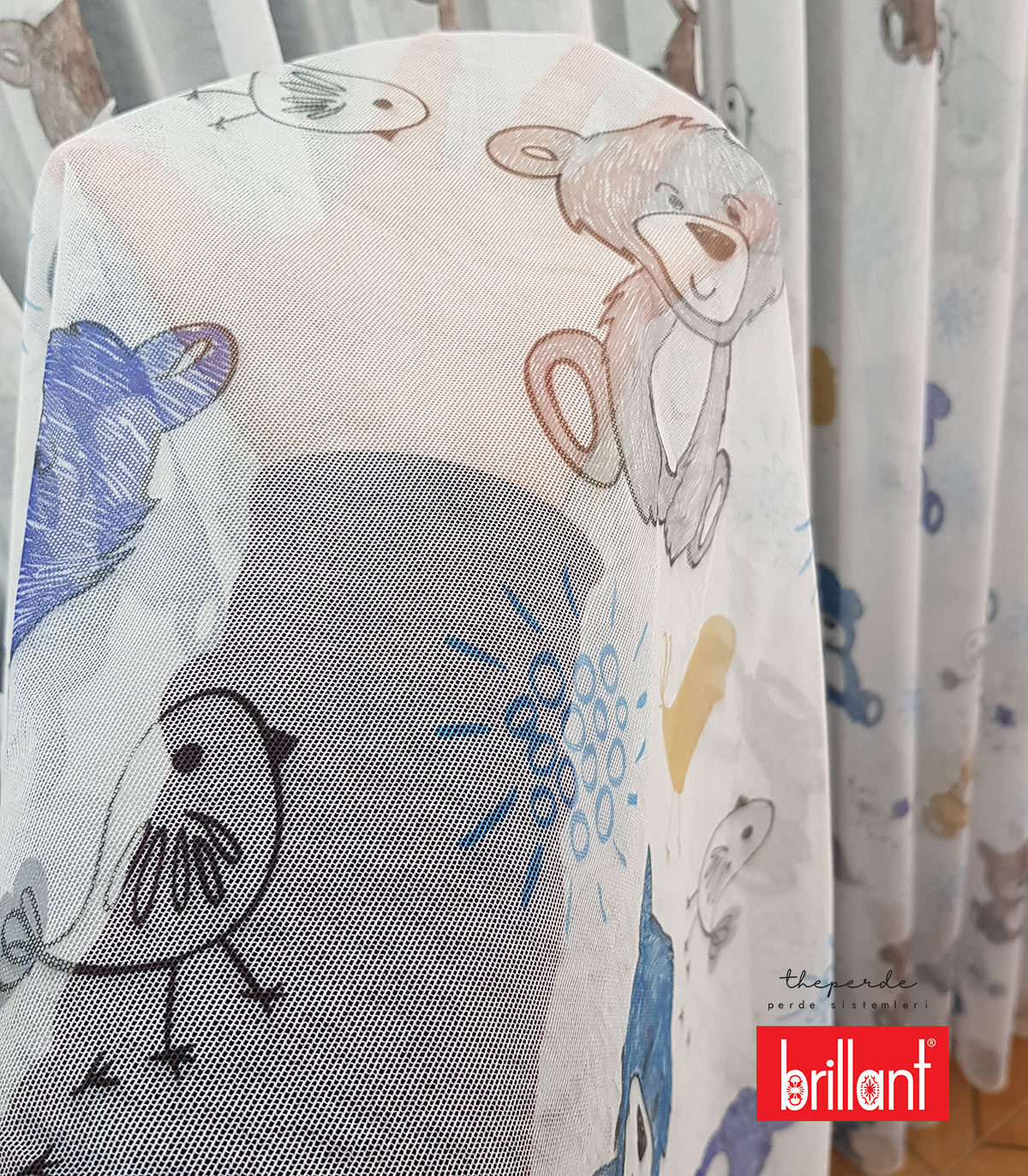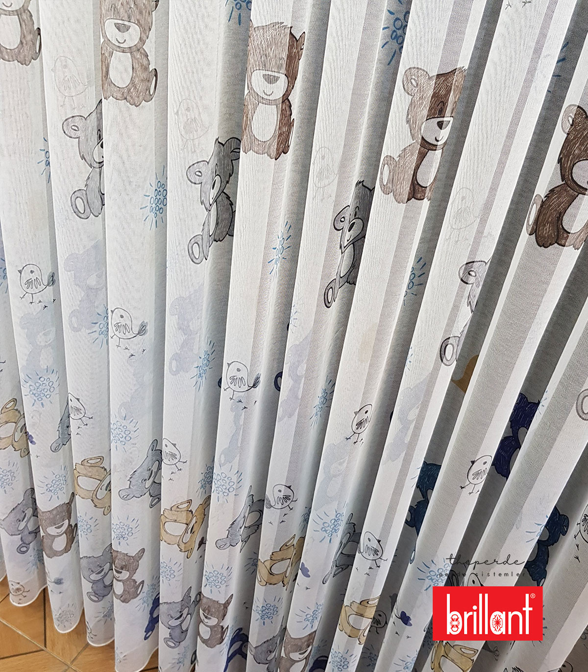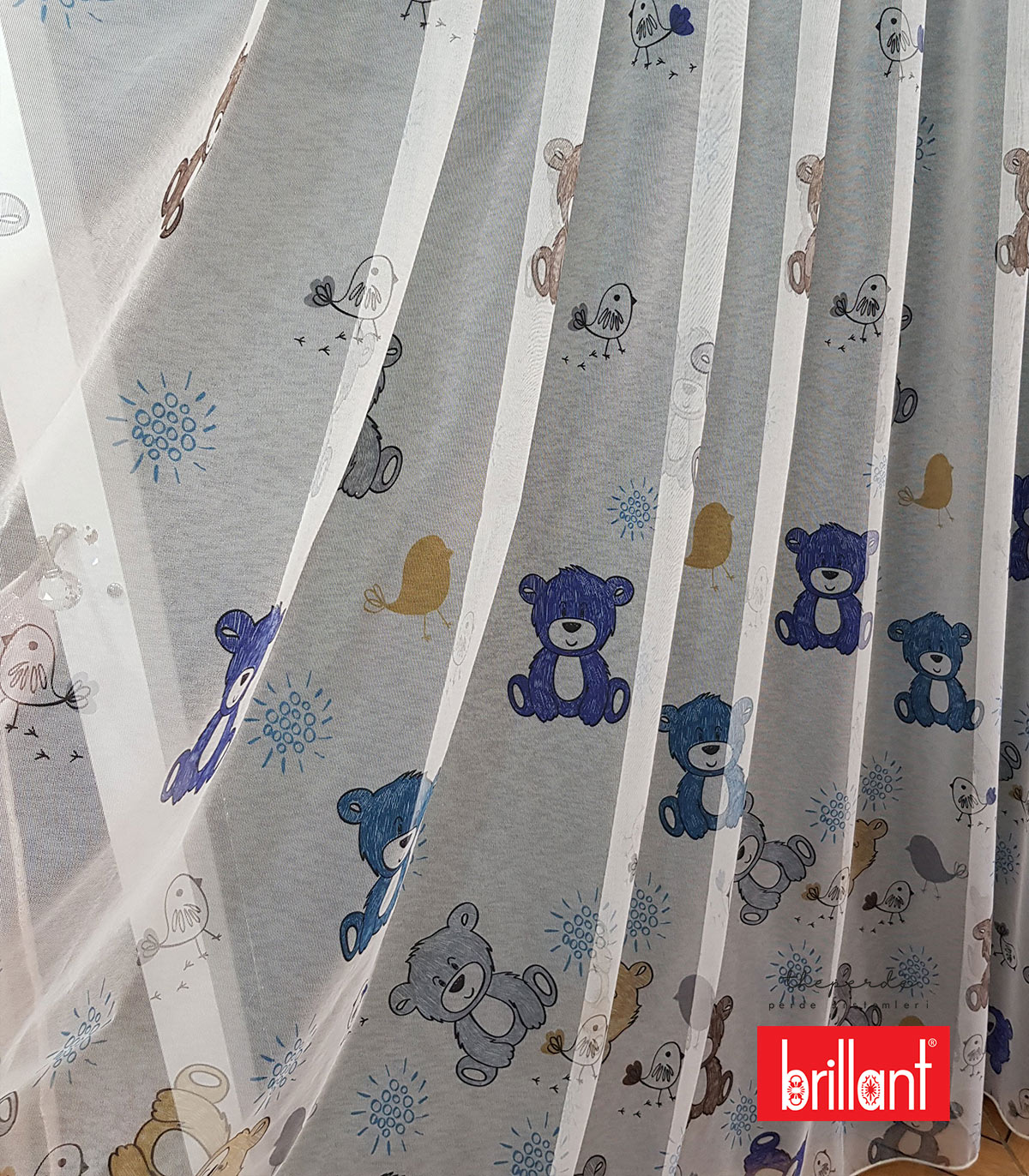 Brillant marka dijital baskı bir üründür. Genel olarak Bebek ve Çocuk odaları için tercih edilmektedir. Mavi ayı ve kuş figürlü olduğundan dolayı daha çok kız çocuk ve bebek odaları için tercih edilmektedir.