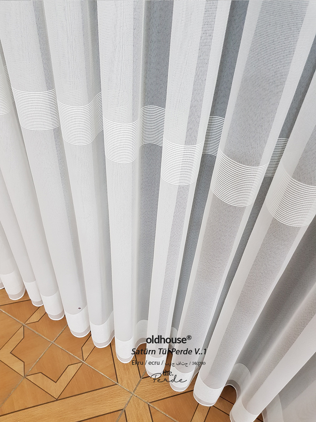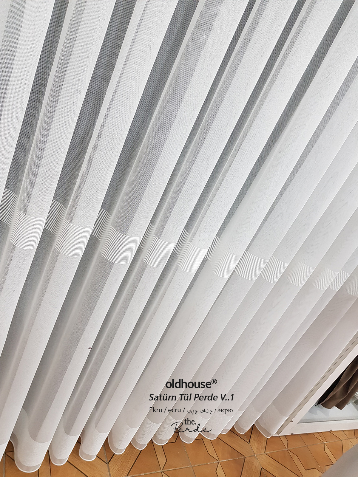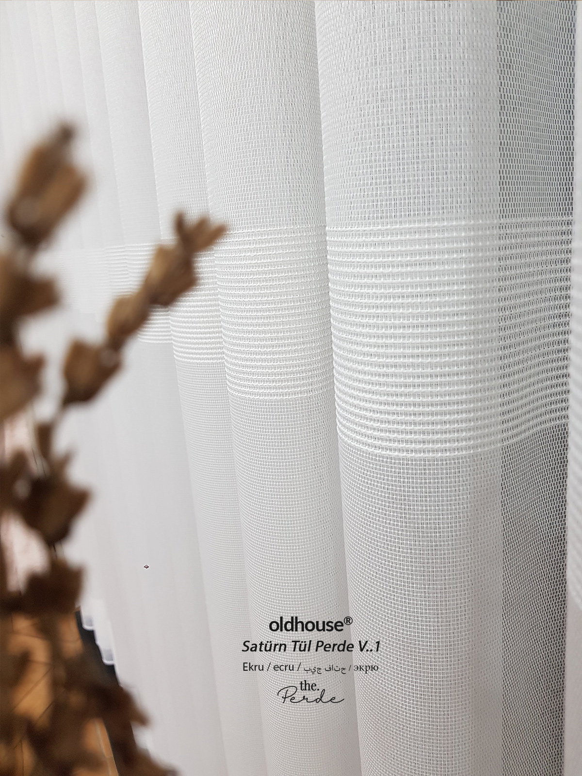 Oldhouse Bantlı Tül Perde Modern Sade Satürn Ekru V.1