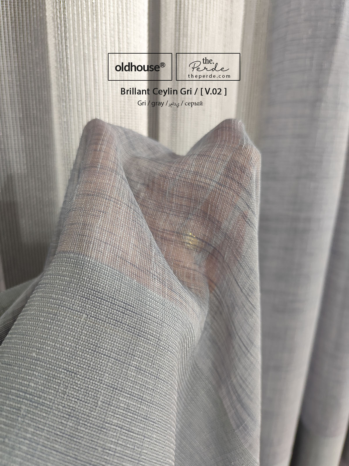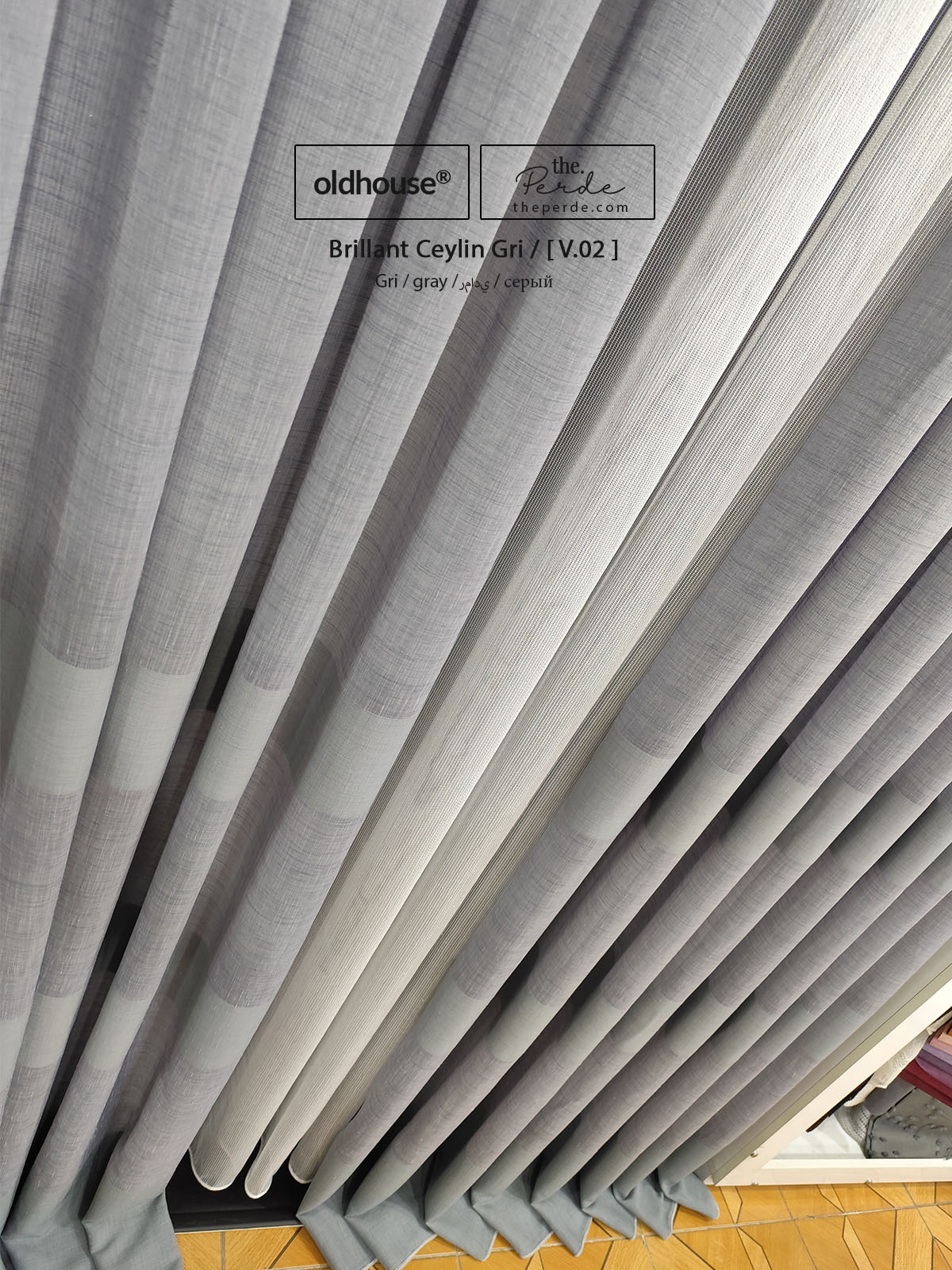 Outlet Brillant Tül Perde Ceylin Gri Bantlı Keten Düz Dikim V.02
