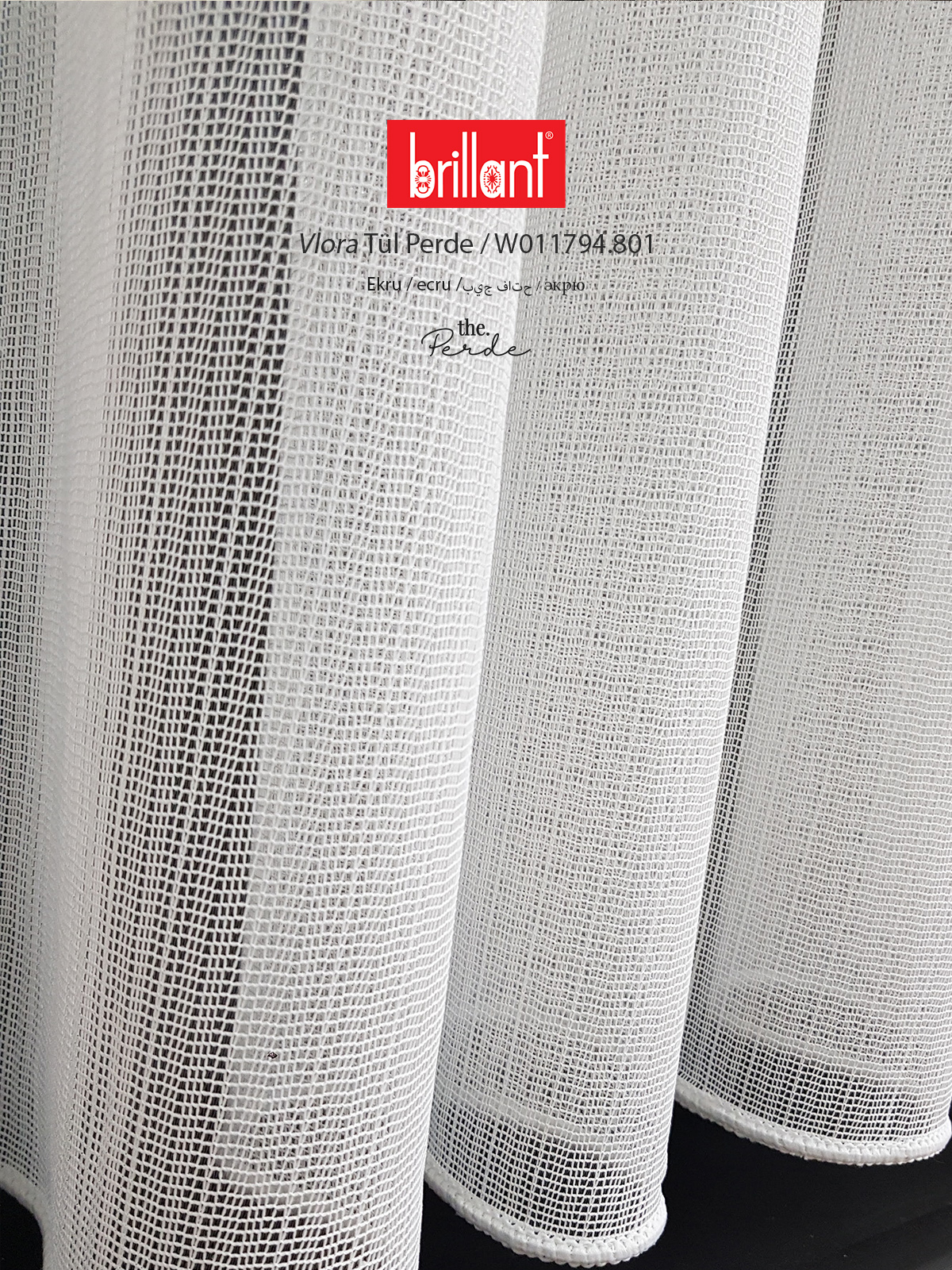 Outlet Brillant Tül Perde Vlora W011794.801 Ekru Düz Dikim