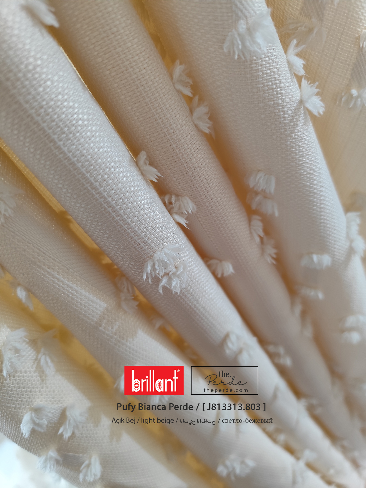 Ev dekorasyonunda her detay önemlidir ve Ponponlu Fon Perde Brillant Pufy Bianca J813313-803, bu detayları kişiselleştirme imkanı sunarak tam size göre bir deneyim vaat ediyor. Keten açık bej rengi, zarif ponpon detayları ve kullanıcı dostu özelleştirme seçenekleriyle, bu fon perde evinize hem şıklık hem de işlevsellik katıyor.