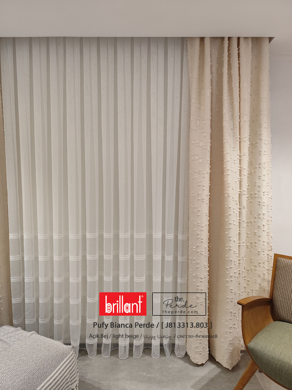 Bu esnek seçenekler sayesinde, Ponponlu Fon Perde Brillant Pufy Bianca tamamen size özel bir ürün haline geliyor.